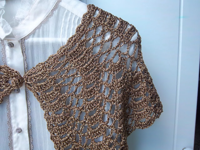 Este hilo dorado lo guardaba desde hace tiempo. empezó siendo un calado a dos agujas, pero no me convencía mucho, la verdad es que no me gustaba y como lo que pasa con estas cosas, acabó en un cajón...